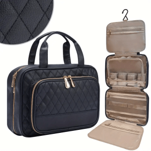 Hanging toiletry bags offer practicality, organization, and convenience. With multiple compartments and pockets, they allow for efficient storage of various toiletries, makeup, and skincare products, keeping them organized and easily accessible. The hanging feature enables them to be conveniently hung in bathrooms, saving counter space and providing easy access to essentials while on the go.