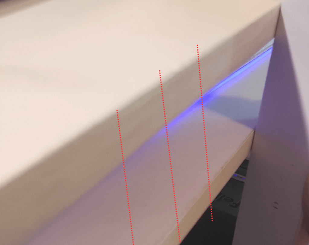 Re-attach the larger piece of the drawer slides to the smaller pieces on both sides of the shelf. Then with the help of another person, chair, or small step ladder, position the entire tray under the desk such that the shelf board and main deskboard are flushed at the front. My under desk shelf sits a few centimeter’s behind the front part of the main deskboard.