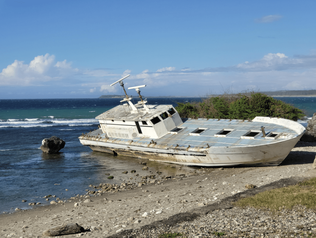 It’s a striking sight—weathered and grounded on rocky shores, surrounded by crashing waves and windswept scenery. I didn’t get any closer than this snapshot but the boat is likely a former patrol or fishing vessel, now rests as a quiet relic of the past, adding an eerily haunting beauty to the natural landscape. It’s a favorite photo stop for travelers exploring the dramatic coastal stretch of northern Luzon.